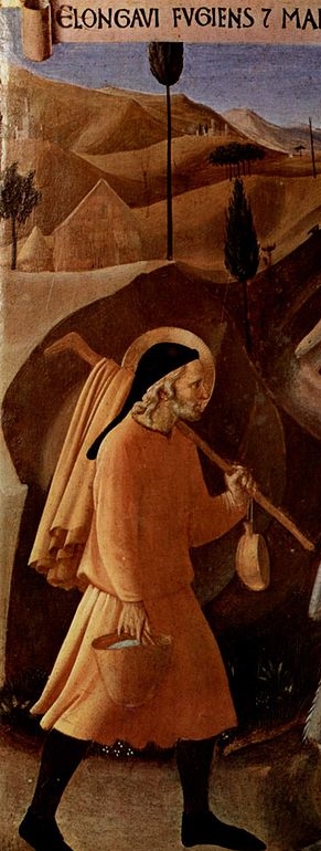 Fra. Angélico representa a San José andando detrás del burro que lleva a su Esposa y al niño y, a mi parecer, ha captado enteramente la esencia de San José, es decir, seguir, obedecer y servir.